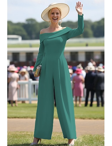 Tute Lunghezza al pavimento Abito da cerimonia per signora Mezza Manica Monospalla Elegante Casual Formale Ospite di nozze con Tinta unita