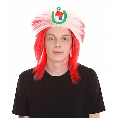 Parrucca da tifoso della nazionale peruviana 2026 - Accessorio costume per tifosi di calcio rosso e bianco