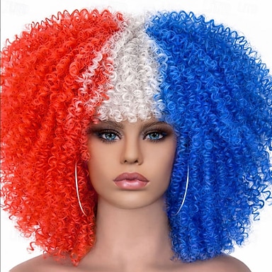 Parrucca da tifoso USA 2026 - Grande afro rossa bianca e blu per sostenitori del calcio