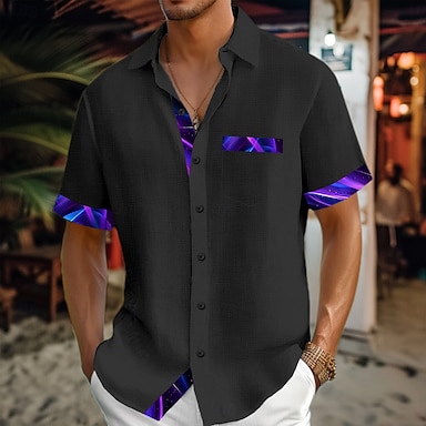 Per uomo Camicia camicia di lino Camicia estiva Abbigliamento mare Maglietta informale Camicia con bottoni Color Block Da mare Curise Nero Bianco Rosa Blu marino Manica corta Bavero Estate