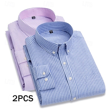 Per uomo Camicia Camicia elegante Camicia button-down Camicia Oxford A righe Quotidiano Affari Blu+Blu chiaro Rosso + grigio Azzurro + grigio Viola + Blu Manica Lunga Collo ripiegato Tutte le stagioni