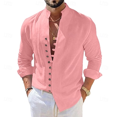 Per uomo Camicia di lino Camicia popover Camicia elegante Camicia casual Camicia da Spiaggia Camicia con colletto alla coreana Semplice Vacanza Casuale Nero Bianco Rosa Blu Manica Lunga Colletto alla