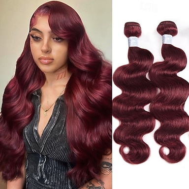 Extension di capelli umani ondulati color bordeaux 99j#, 2 pacchi, 12-28 pollici