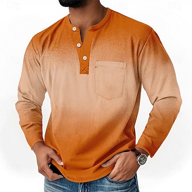 Per uomo Grafico Sfumatura Maglia Henley a nido d'ape Stile casual Stile classico Manica Lunga Stampa 3D Moda Designer Essenziale Quotidiano All'aperto Primavera & Autunno Blu Arancione Marrone Grigio
