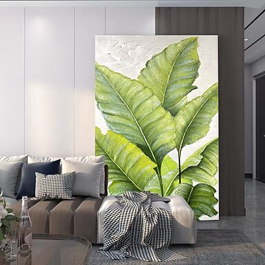 dipinto a olio fatto a mano su tela decorazione artistica da parete pittura astratta texture piante verdi foglie di banano soggiorno ingresso decorazione arredamento casa dipinto arrotolato senza