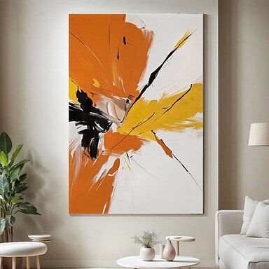 dipinto a olio astratto minimalista di grandi dimensioni fatto a mano su tela, dipinto arancione, tela acrilica nera, arte contemporanea, dipinto bianco, arredamento per ufficio