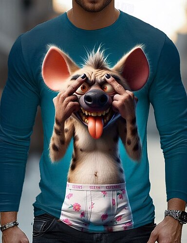 Per uomo Animale Divertente Iena Maglietta Manica Lunga maglietta Stampa 3D Girocollo Camicia Moda Essenziale Streetwear Casuale Quotidiano Blu chiaro Blu Verde Estate Primavera Abbigliamento S M L