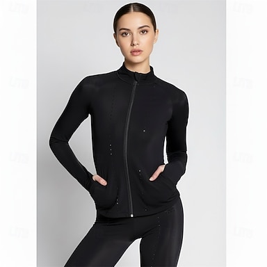Giacca di pile per pattinaggio ghiaccio Per donna Da ragazza Pattinaggio sul ghiaccio Giacca Superiore Nero Foro per pollice Elasticizzato Addestramento Competizione Vestiti da pattinaggio sul