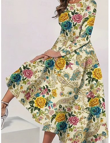 Per donna Abito Midi Vestito Casual Vestito a ruota Elegante Moda Quotidiano All'aperto Weekend Vestibilità regolare Floreale Manica Lunga Girocollo Verde Primavera Autunno Inverno