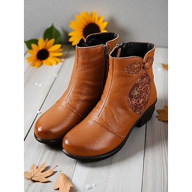stivaletti da donna in crosta di pelle con cerniera laterale – comodi tacchi bassi, stile casual retrò, perfetti per l'uso quotidiano, il lavoro, le passeggiate e gli outfit autunnali/invernali