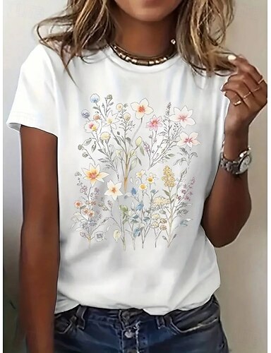 Per donna Maglietta Stampato Floreale Grafico Piante Elegante Classico Casual Manica Corta Girocollo Top Regolari Quotidiano Bianco Estate Primavera