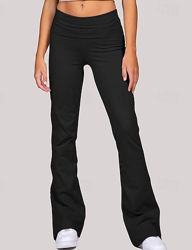 Per donna Pantaloni a zampa Pantaloni sportivi Controllo addominale Palestra Atletico Pilates Pantaloni Tinta unica Nero Autunno Gli sport Abbigliamento sportivo Taglia piccola