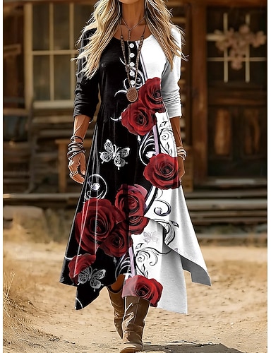 Per donna Abito Midi Abito a Tubino Casual Quotidiano Ferie Vestibilità regolare Floreale Grafico Manica Lunga Girocollo Blu Rosso Viola Verde Primavera Inverno