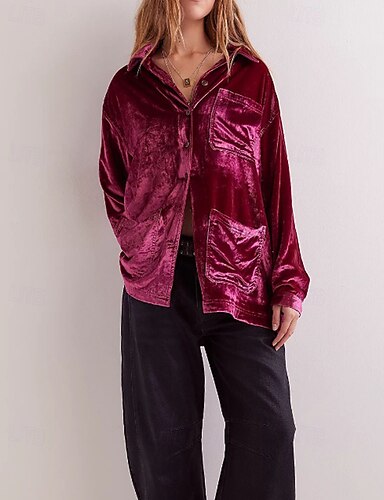 Per donna Camicia Velluto Elegant Elegante Bottoni Semplice Vintage Elegante Manica Lunga Colletto a Camicia Top Regolari Ferie Uscire Argento Blu marino Rosa Primavera Autunno