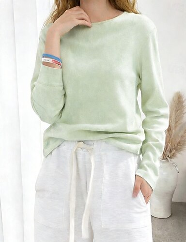 Per donna Misto cotone Top a maglia a coste Tinta unica Elegante Casual Manica Lunga Girocollo Top Regolari Quotidiano Uscire Nero Bianco Verde Primavera Autunno