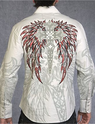 Per uomo Totem Camicia Camicia Western Camicia da cowboy Manica Lunga Moda Designer Casual All'aperto Ferie Autunno & Inverno Collo ripiegato Stampato Bottonato Bianco Viola Verde Blu + Blu Grigio