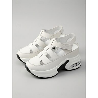 Sandali da donna bianchi con plateau – sandali sportivi leggeri con ammortizzazione ad aria e suola ammortizzante, scarpe comode per camminare, viaggiare e per il tempo libero & all'aperto