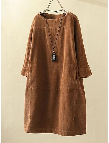 Per donna Abito Midi Abito a Tubino Casual Quotidiano Vestibilità regolare Semplice Manica 3/4 Girocollo Blu marino Arancione Marrone Verde Primavera Autunno Inverno