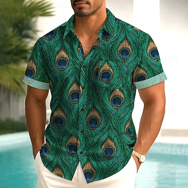 Per uomo Piuma di pavone Camicia Camicia Estiva Camicia con Bottoni Manica Corta Vintage Retrò All'aperto Vacanza Abbigliamento Quotidiano Estate Primavera Collo ripiegato Stampa 3D camicie con