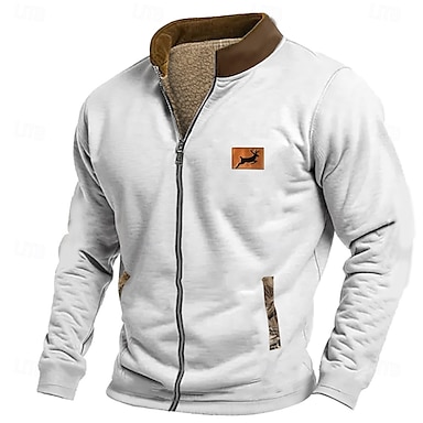 Per uomo Cervo Felpa Maglia Felpa con zip Manica Lunga Felpa Collo alla coreana Con cerniera Moda Quotidiano Semplice Stampa Vacanza Ferie Uscire Tasca Cerniera frontale Inverno