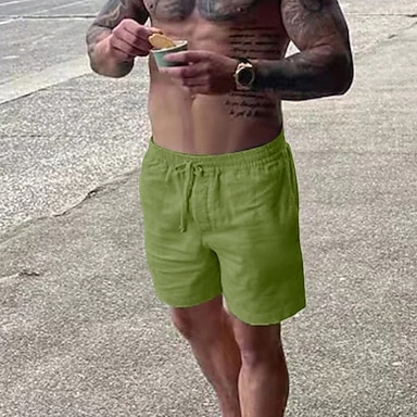 Per uomo Pantaloncini Pantaloncini di lino Pantaloncini estivi Pantaloncini da spiaggia A cordoncino Vita elastica Liscio Traspirante Morbido Breve Informale Giornaliero Per eventi Streetwear Hawaiano