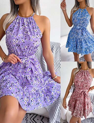 Per donna Mini Abito Vestito Casual Abito Floreale Abito Stampato Moderno Quotidiano Spiaggia Uscire Vestibilità regolare Floreale Senza Maniche All'americana Rosa Viola chiaro Azzurro Estate