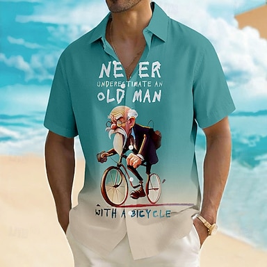 Per uomo Bicicletta Vecchio Uomo Gergo divertente Camicia Camicia Estiva Camicia con Bottoni Manica Corta Vintage Retrò All'aperto Vacanza al Mare Estate Primavera Collo ripiegato Stampa 3D Camicia