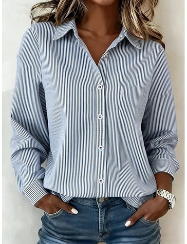 Per donna Tunica Grafico A righe Vintage Elegante Classico Manica Lunga Colletto a Camicia Top Regolari Quotidiano Sportivo Uscire Blu Nero Rosso Verde Cachi Primavera Autunno