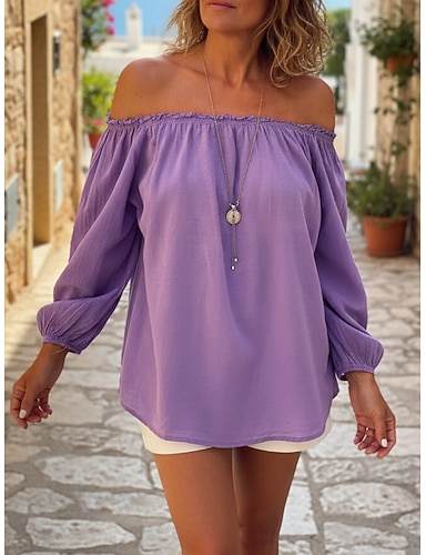 Per donna Camicia Blusa Semplice Bohemien Elegante Casual Manica Lunga Senza Spalle Top Regolari Quotidiano Ferie Uscire Blu Giallo Rosa Verde militare Viola Estate Primavera