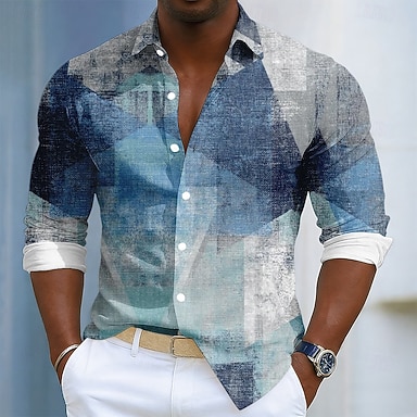 Per uomo Blocco di colori Patchwork Colore sfumato Camicia Camicia con Bottoni Manica Lunga Moda Casual Quotidiano All'aperto Abbigliamento casual alla moda Primavera Autunno Collo ripiegato Stampa