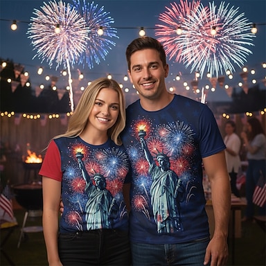 Patriotico T-shirt Maglietta grafica Testo USA Statua della Libertà Retrò Vintage Casual Patriotico Corte 1776-2026 per Unisex Adulti Stampa 3D per Giorno dell'Indipendenza / 4 Luglio 4 Luglio Feste