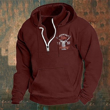 Per uomo Maglione Felpa con cappuccio e zip corta Vino Blu marino Verde Grigio Azzurro Con Cappuccio Grafico Tasca Casuale Quotidiano Streetwear Casual Autunno Inverno Abbigliamento Felpe con