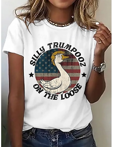 Giorno dell'Indipendenza Maglietta Patriottica da Donna Grafica Bandiera Vintage Elegante Classica Maniche Corte Collo Rotondo Regular Tops Print Blu Nero Bianco Rosso Grigio Estate Primavera