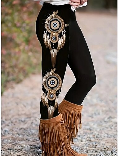 Per donna Leggings Vacanza Vintage Moda Lunghezza intera Vita Alta Grafico Stampa Calore Termico Morbido Traspirante Elasticizzato Quotidiano All'aperto Vacanza Nero Giallo Arcobaleno Primavera