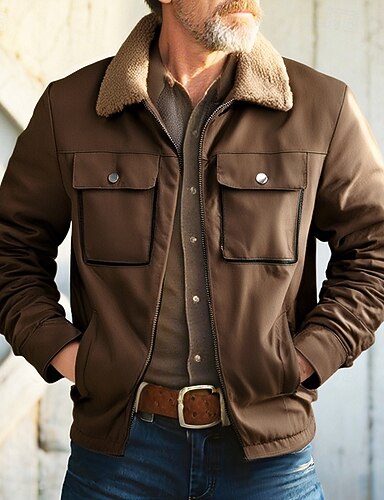 Per uomo Giacca da esterno Giacca in pile Giacca cargo Giacca con cappuccio Formale Interni Tasche Inverno Primavera & Autunno Tinta unica Vintage Di tendenza Colletto Standard Nero Marrone Cachi