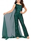 Tuta Completo Pantalone Tre Pezzi Lunghezza al pavimento Abito da cerimonia per signora Manica 3/4 Collo quadrato Elegante Formale Ospite di nozze Chiffon Con Paillettes con Paillettes Applicazioni