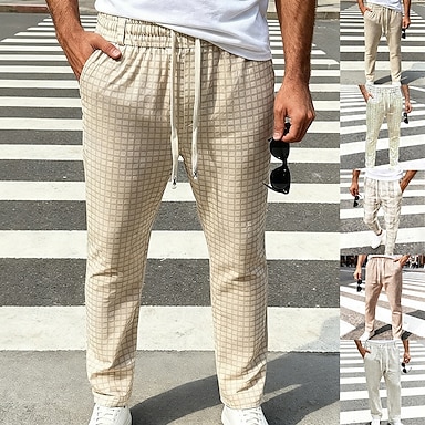 Per uomo Pantaloni Pantaloni casual Coulisse Tasca Elastico in vita Plaid Comodità Morbido All'aperto Quotidiano Ferie Moda Stile Classico Cáqui Escuro CachiA Micro-elastico