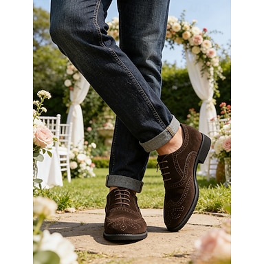 scarpe stringate da uomo in similpelle marrone con suola spessa, scarpe da sposa casual ma eleganti, ideali per invitati e sposi