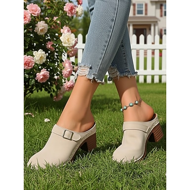 scarpe con tacco a spillo blu da donna – comode scarpe con tacco a blocco spesso e fibbia, ideali per l'uso quotidiano, il lavoro, le feste in giardino e le passeggiate all'aperto
