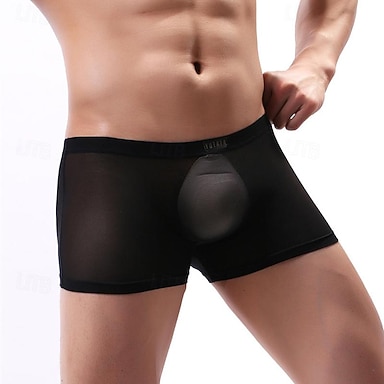 Per uomo 1 Pezzo Mutandine Sexy Boxer Rete Poliestere Morbido Confortevole Traspirante Stella Vita media Nero Bianco