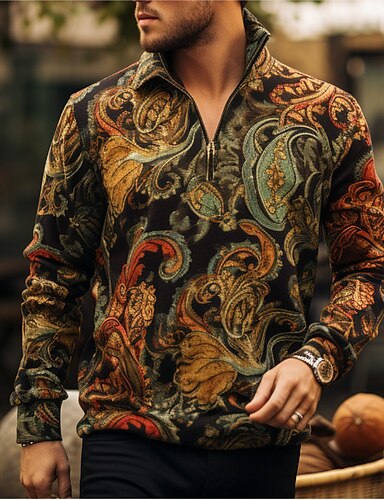 Per uomo Paisley Polo con zip Maglia da golf Manica Lunga Magliette polo Camicie con Colletto Vintage Casual Abbigliamento da vacanza Abiti da festa Stampa 3D Polo con cerniera a un quarto Autunno