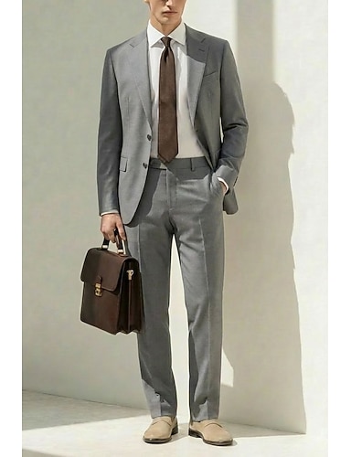 Uomo Completi in Lino Matrimonio in Spiaggia Affari Bianco Grigio chiaro Primavera & Estate Tuta Bavero a lancia Leggero Formale Tinta unita Vestibilità su misura 2 pezzi Monopetto Due Bottoni