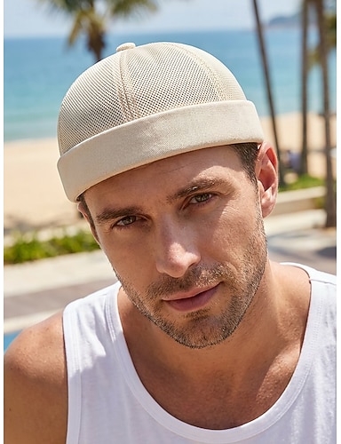 Cappello da marinaio da uomo in poliestere a rete traspirante, berretto regolabile senza visiera disponibile in diversi colori per l'uso quotidiano, le vacanze al mare, i viaggi e lo stile estivo