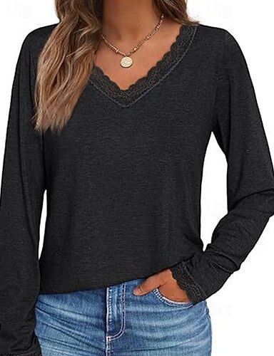 Per donna Blusa Top Eleganti Top in pizzo Bordo in pizzo Drappeggiato Tinta unica Semplice Elegante Vintage Signore Manica Lunga Scollo a V Top Regolari Quotidiano Lavoro Ferie Nero Bianco Vino