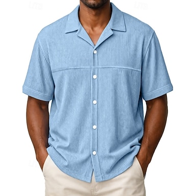 Per uomo Camicia Camicia Estiva Abbigliamento da spiaggia Camicia di Velluto a Coste Nero Bianco Vino Blu marino Marrone chiaro Manica Corta Semplice Collo alla coreana Henley Casuale Quotidiano