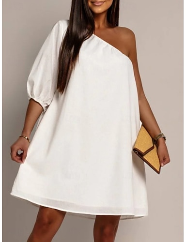 Per donna Mini Abito Abito Bianco Vestito Casual Elegante Moda Moderno All'aperto Vacanza Uscire Vestibilità comoda Semplice Mezza Manica Monospalla Bianco Estate Primavera
