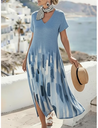 Per donna Abito Midi Vestito Casual Abito a trapezio Abito Stampato Moda Moderno All'aperto Vacanza Weekend Vestibilità comoda Ombre Geometrico Manica Corta Scollo a V Blu Rosa polveroso Rosa Viola