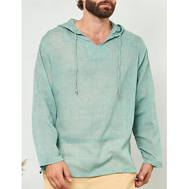Per uomo Camicia Camicia di lino Camicia popover Camicia Estiva Abbigliamento da spiaggia Camicia con cappuccio Tinta unica Vacanza Streetwear Bianco Verde chiaro Blu Verde Manica Lunga Con Cappuccio
