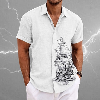 Per uomo Nautico Barca a vela Camicia Camicia con Bottoni Manica Corta Vintage Casual Vacanza Quotidiano Camicia hawaiana Estate Primavera Collo ripiegato Camicie con Colletto Cardigan con Bottoni