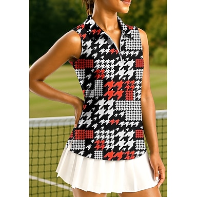 Per donna Geometrico Pied-de-poule Top Maglietta sportiva Polo da golf Maglia da tennis Senza Maniche Cerniera Alta elasticità Traspirante Tennis Pickleball Corsa Collo ripiegato Collo con zip